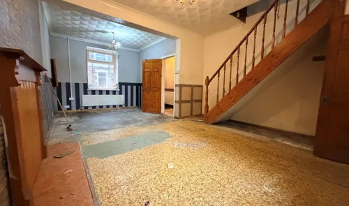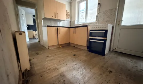 A mid terraced house for refurbishment which provides 2 reception rooms, kitchen, bathroom and 3 bedrooms. There is double glazing and a rear garden...