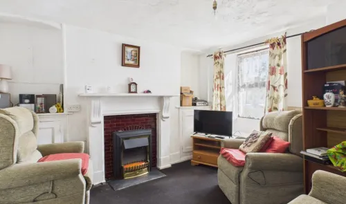 An extended two-bedroom mid-terrace house originally arranged as three bedrooms and now offering two generous doubles. The property requires updating...