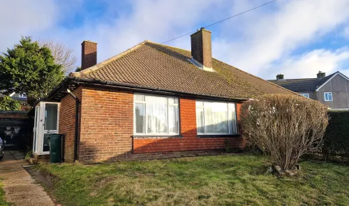 A two bedroom semi-detached bungalow requiring modernisation with sea views. Benefits from garage, driveway providing off-street parking, front garden...