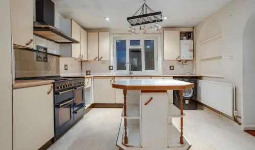 This mid-terrace 70s style property is arranged over two floors and is in need of complete refurbishment throughout. It has a gas heating system via...