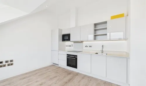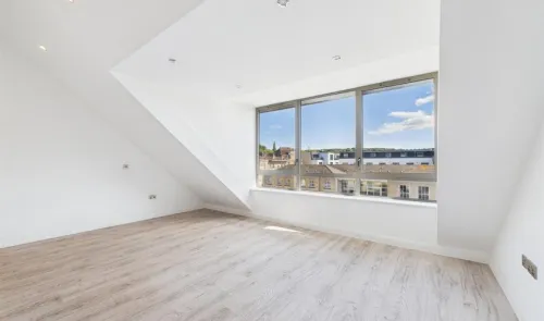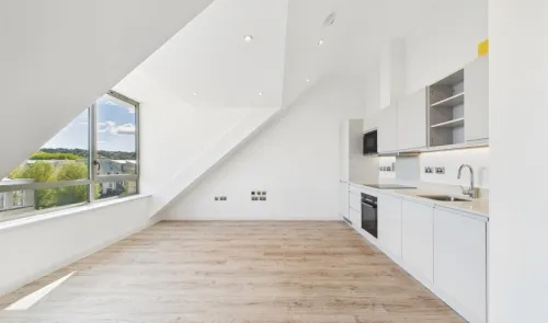 A modern two bedroom penthouse apartment in a desirable riverside development. The property features an open-plan kitchen, dining and living area with...