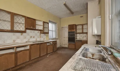 A vacant mid terrace building arranged to provide a ground floor commercial unit and a first floor two bedroom flat. The property requires a program...