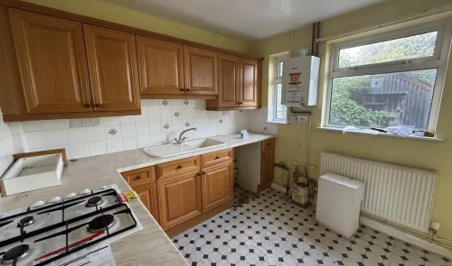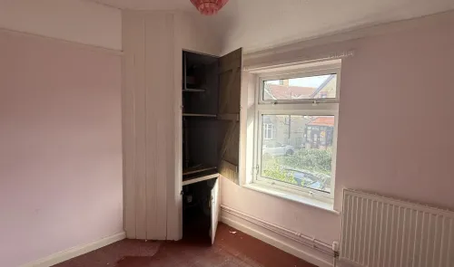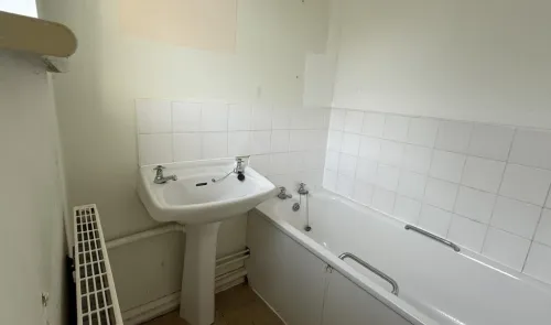 A three bedroom mid-terrace house which is now in need of improvement and modernisation. Good sized garden with potential for off-street car parking...