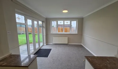 A three bedroom detached bungalow set back from the road behind a sizeable driveway allowing for off road parking and giving access to double garage...