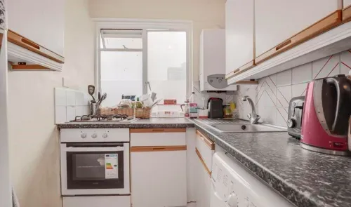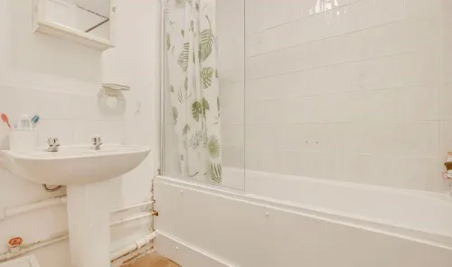 A two bedroom, self-contained, first-floor flat i n need of some decorative updating. The property is being offered with a 40% share of the Freehold...