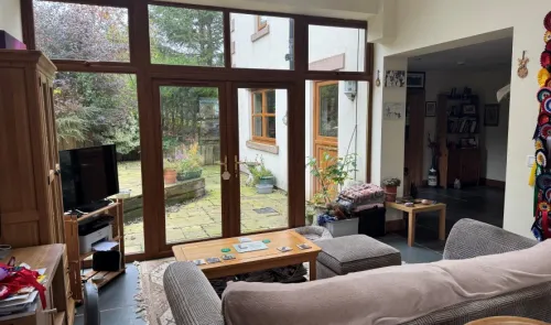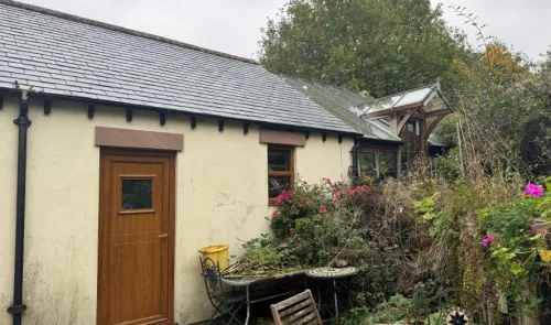 Stone built detached house with an idylic village location, comprising: hall, living room, kitchen, sun room, utility room, store room to the ground...