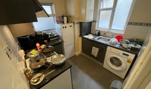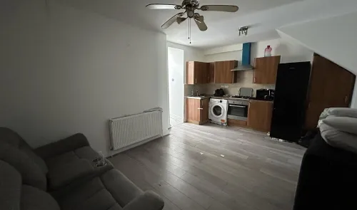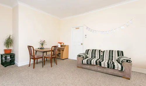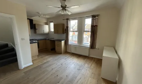 A two bedroom, self-contained, first-floor flat i n need of some decorative updating. The property is being offered with a 40% share of the Freehold...