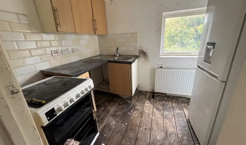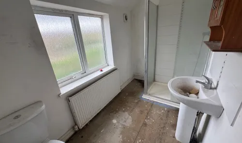 A mid terrace house with three bedrooms, gas central heating and double glazing. The property requires modernisation. Front garden with potential for...