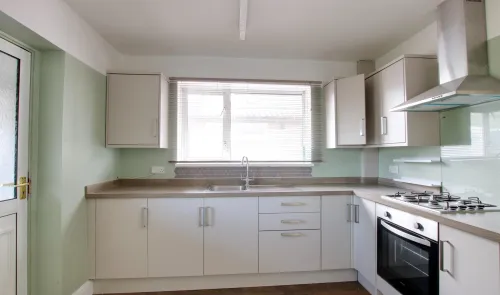 A three-bedroom end-terrace house which has gardens to both the front and rear, with garage in a nearby block. The property is in need of a programme...