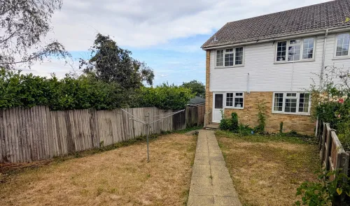 A three bedroom end of terrace house, requiring updating throughout. The property is located in an off-road position and has a large front garden and...