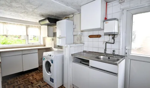 A two bedroom mid terrace property requiring renovation offering a lounge, dining room, kitchen and shower room The rear of the property benefits from...
