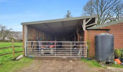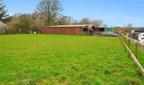 Approximately 9.95 acres (4.03 hectares) of pasture, amenity and woodland. Range of buildings currently providing a stable yard. Mains electricity and...