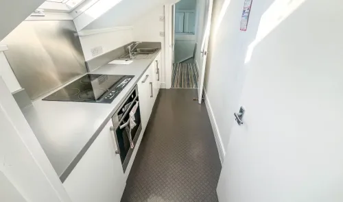 A spacious studio apartment arranged across the first and second floors of an attractive, period property. The main living space can be partitioned to...