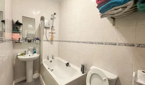 End terraced house with two bathrooms, comprising lounge, dining kitchen with built in oven and hob, bathroom, two double bedrooms - one of which has...