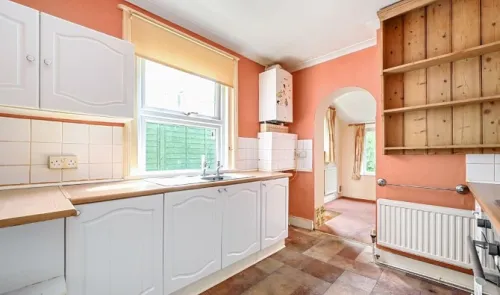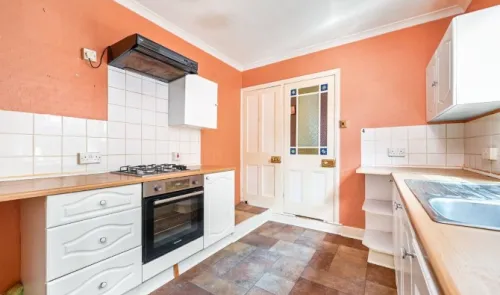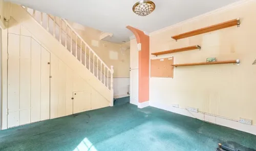 This mid-terrace 70s style property is arranged over two floors and is in need of complete refurbishment throughout. It has a gas heating system via...