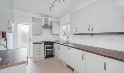 A one bedroom mid terrace bungalow benefiting from front and rear gardens, in need of modernisation. Well located for transport links, with extension...