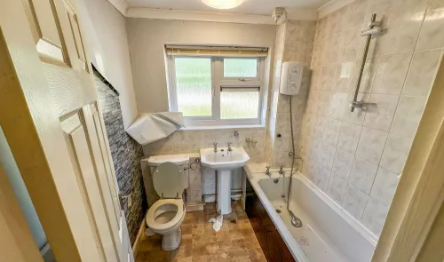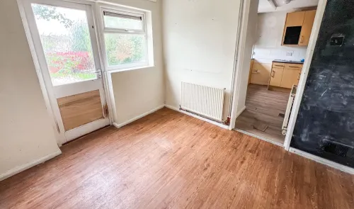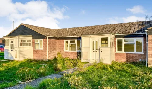 A two bedroom mid terrace bungalow, benefiting from front and rear gardens, in need of modernisation, in a pleasant location, with extension potential...
