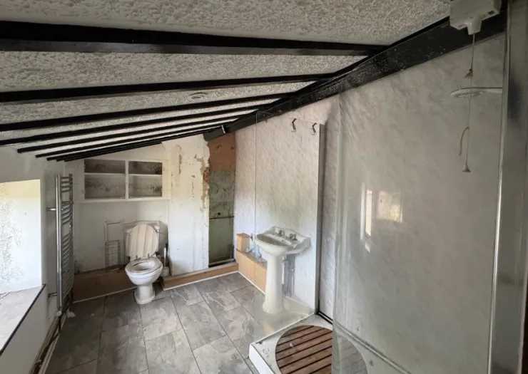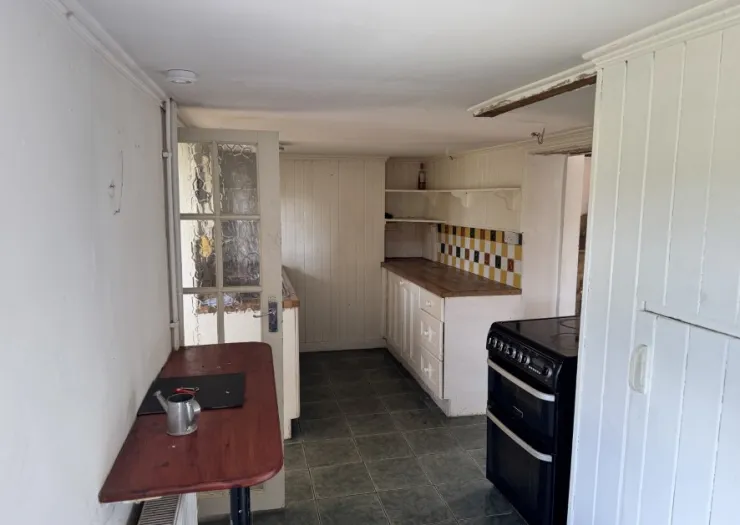 In need of modernisation, this two-bedroom detached cottage offers a family home with scope for extension to the west gable (stpp), or for the more adventurous could be divided creating a further plot if planning was sought.