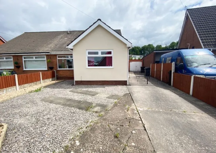 A charming semi-detached bungalow with hall, lounge, conservatory, kitchen with built in oven and hob, three bedrooms and bathroom. Paved areas to front and rear. Garage, driveway. Gas central heating and double glazing. Vacant possession. Surrounded by countryside and close to parks, schools, and offering easy access to the M6 motorway. Tenant ready property rental values in the area are in the region of £1100 to £1200 per month. EPC rating D.