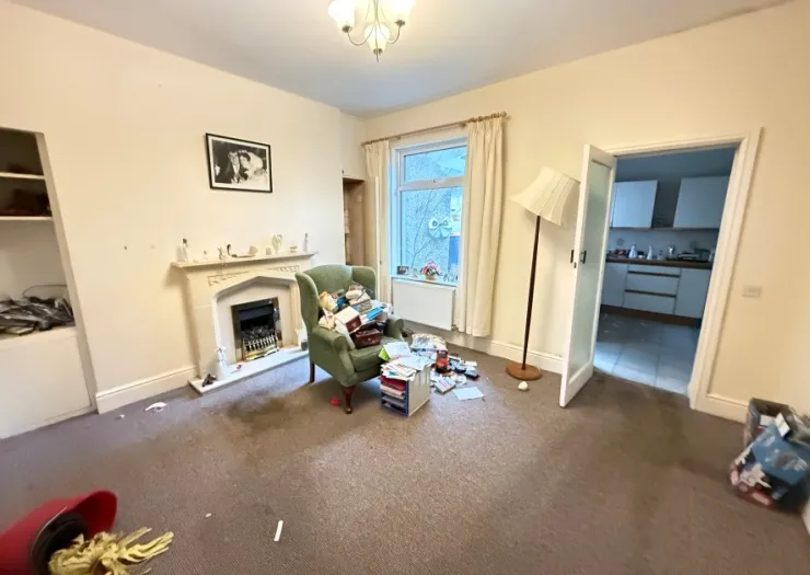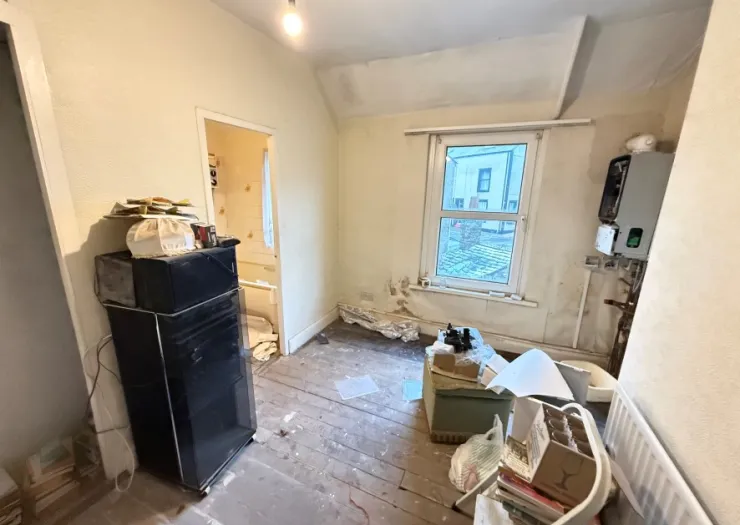 A three storey terraced house in need of modernisation and offering great potential. The accommodation comprises sitting room/bedroom, wet room, living room, kitchen, two bedrooms and bathroom upstairs and large attic room.