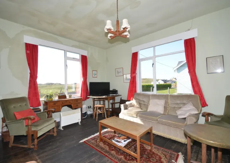 This detached timber framed bungalow sits in a plot of 0.44 Acres and lies just 100m from the beach. The accommodation comprises of an entrance hall, duel aspect sitting room, dining room, kitchen/breakfast room, five bedrooms and bathroom. Externally, the property has gated access to the front with a detached garage.