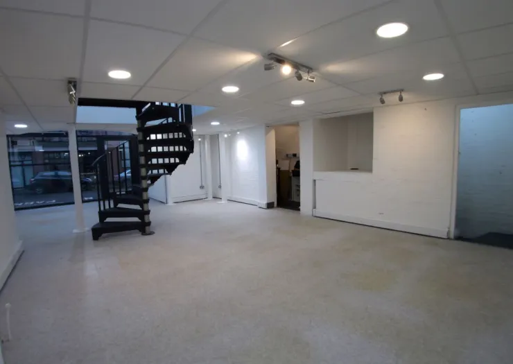 A long leasehold retail/office unit. The accommodation is configured to provide the main retail/office space, with a fully fitted out basement, comprising staff room, kitchen and wc. Accessed via a stylish spiral staircase, there is a mezzanine floor, outside there is a rear parking space. The unit would suit a variety of office, retail, or creative uses, subject to any necessary planning permission.