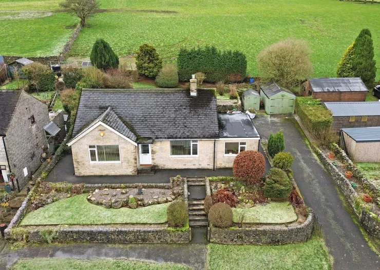 An exciting offering including a three bedroom bungalow in need of internal modernisation, a detached garage, and surrounding lawned gardens, occupying a generously sized plot. The property boasts a rural yet highly accessible position within the Peak District National Park overlooking the adjoining Derbyshire countryside, and being within commuting distance of popular towns and cities.
