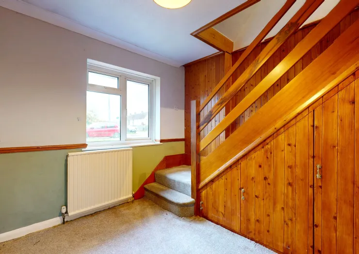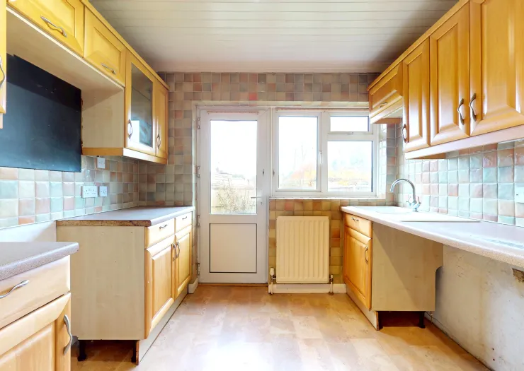 A four bedroom detached chalet bungalow requiring modernisation with accommodation arranged on two floors. Benefits from garage, driveway providing off-street parking, front garden, and garden at rear. Vacant possession.