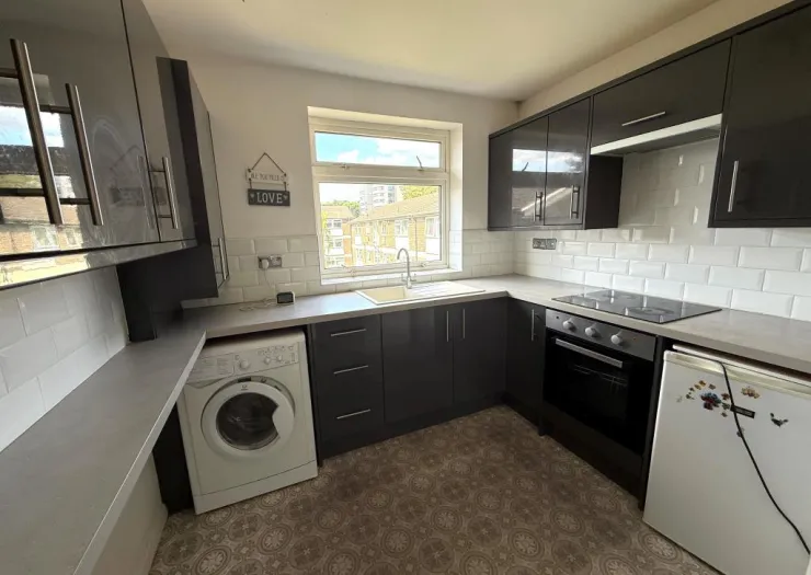 A two-bedroom flat for refurbishment, located on the second floor of this purpose-built block. Remainder of a 142-year lease from 4th January 1972. Leasehold with vacant possession.