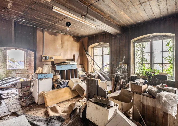 This former mill extends close to 10,000 sq ft / 929 sq m overall, the principal building complex having accommodation largely over four floors, being on a fairly level site on nearly a third of an acre. The property requires comprehensive renovation.
