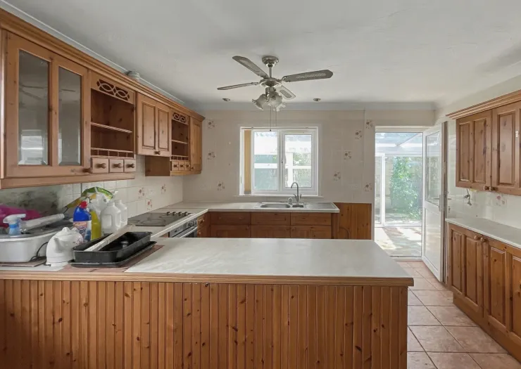 A vacant 4 bedroom dormer bungalow. On the ground floor, the property comprises of an entrance hall, sitting room, kitchen/diner, conservatory two bedrooms and bathroom. To the first floor, there are a further two double bedrooms, one with ensuite shower room. Externally, the property benefits from off road parking for numerous cars to the front of the property and access to a single garage plus enclosed rear garden. The property has the potential to be extended or convert the existing garage (subject to necessary consent).