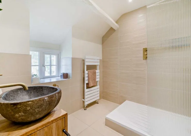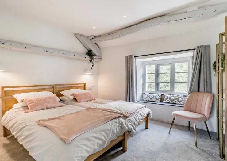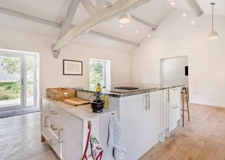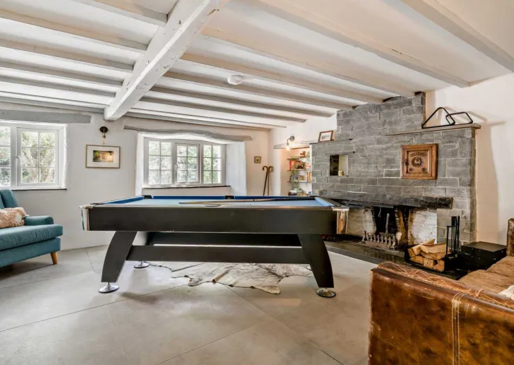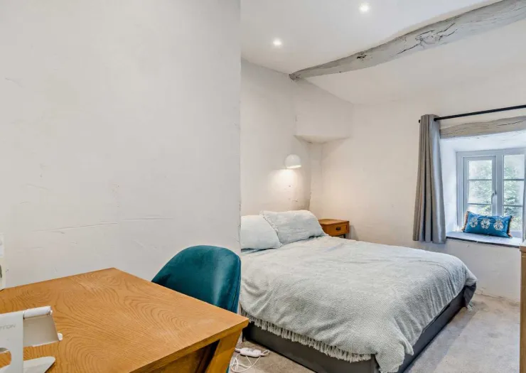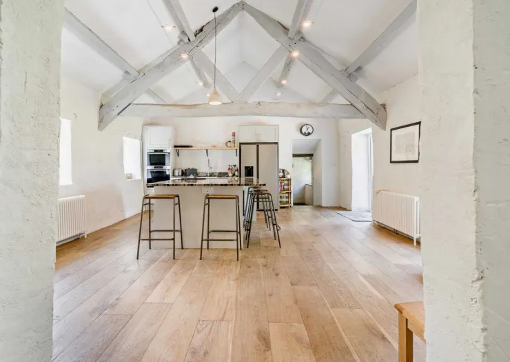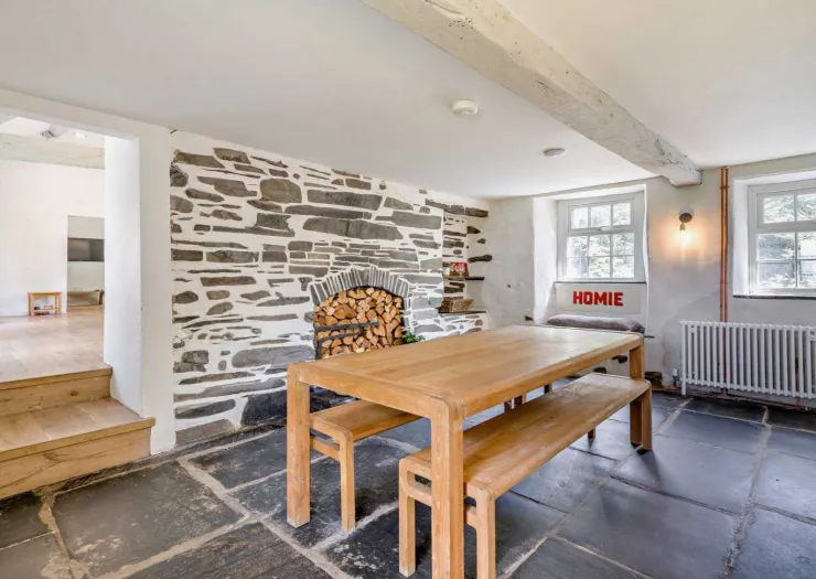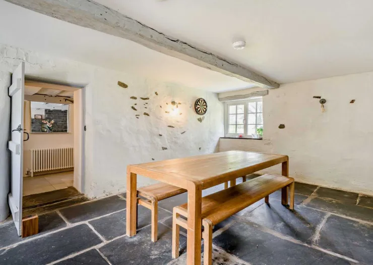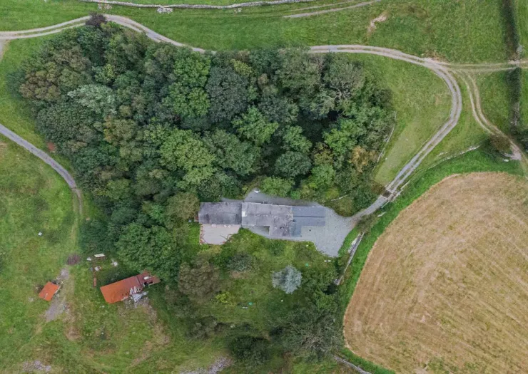 A freehold detached house in an idyllic rural setting, comprising four double bedrooms and three reception rooms. Featuring exposed timbers, slate fireplaces and an open-plan kitchen and dining area with vaulted ceiling and access to the garden decking. The property is comprehensively renovated and modernised, enjoying beautiful views over open countryside. The grounds extend to about 0.52 ha (1.28 acres) and include landscaped gardens, areas of woodland and a disused quarry. Vacant.