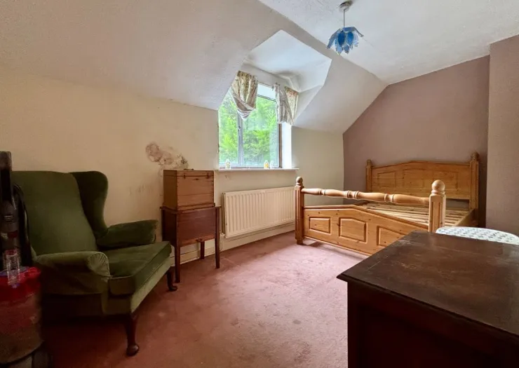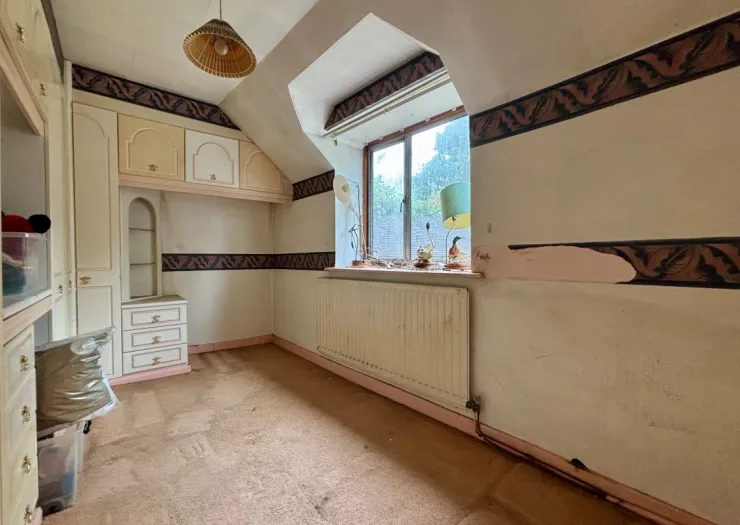 A detached four-bedroom house in need of modernisation on a 2.16-acre freehold plot. With an approximate internal extent of 2,384 sqft, including a barn, stables and a double garage. A unique opportunity to purchase a property with scope for improvement on a large plot, ideal for investors and developers. The accommodation comprises on the ground floor of a living room, conservatory, dining room, kitchen diner, WC, pantry and utility room and upstairs, four bedrooms, a loft room and bathroom.