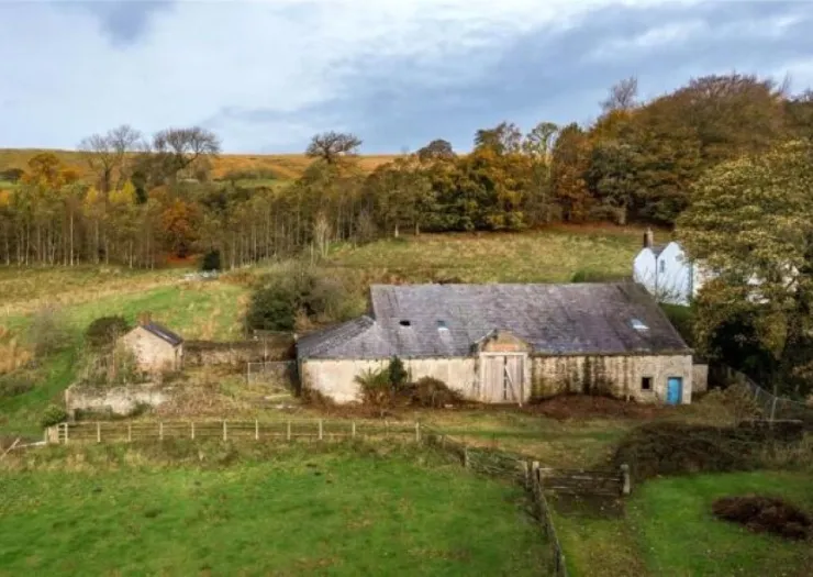 A private access driveway leads up to what is currently a derelict stone-built barn sat on approx. 1.44 acres with planning permission for a four-bedroom detached dwelling overlooking stunning countryside views.