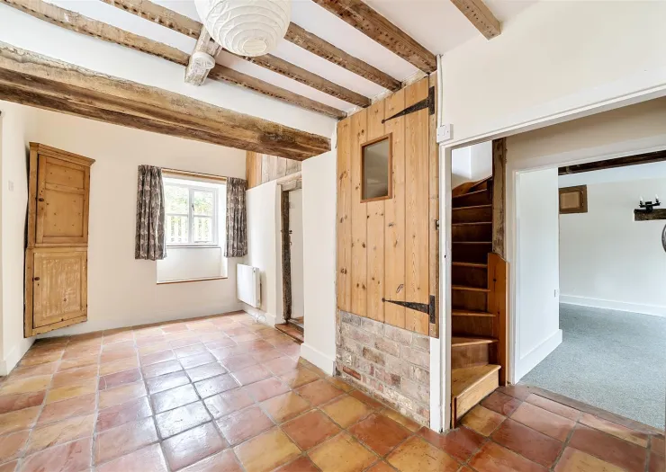 A charming semi-detached cottage in the heart of the village with three bedrooms, a large garden, and views of the Village Green. Full of character, the current owners have taken care to preserve the period features, such as exposed beams and plank doors, quintessential of an early 18th century cottage.