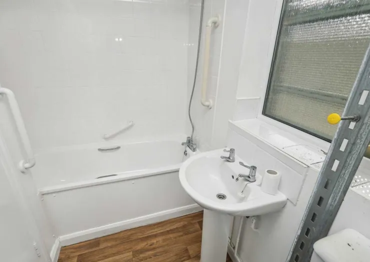 A one bedroom ground floor flat, benefiting from a rear garden. Well located for amenities. In need of modernisation. Vacant.