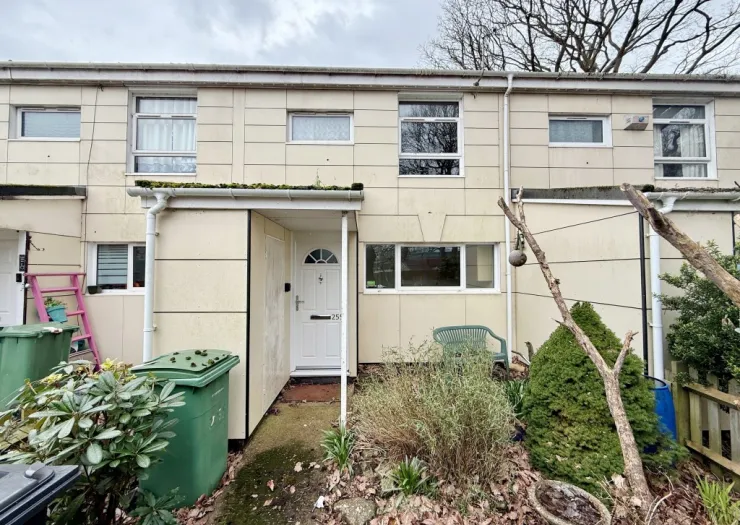 A mid-terrace, two bedroom house of non-traditional construction in need of improvement, having a gas heating system via radiators.
