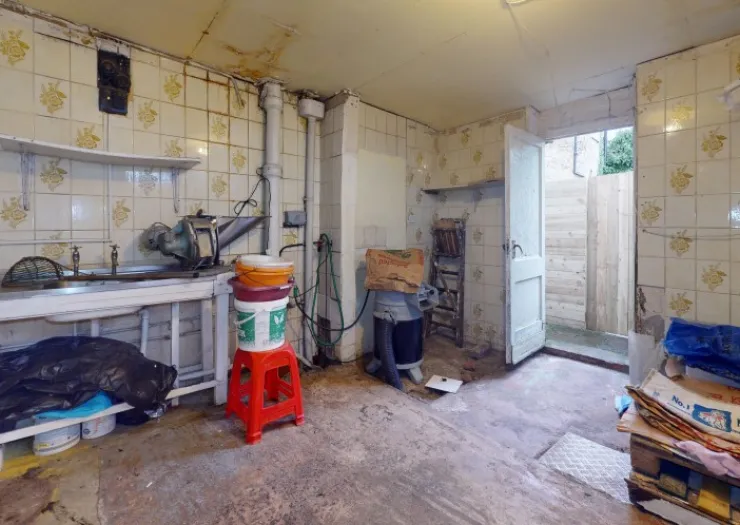 Two storey end terrace property, previously utilised as ground floor takeaway (chippy) with three bedroom living accommodation to the rear and above. Internally the property briefly comprises the following accommodation: - Ground floor – Front takeaway servery/sales, lounge, kitchen. Rear store/prep. First floor – Three bedrooms and bathroom. Externally there is a rear yard area. The property is fitted with gas fired central heating. Would appear suited to continued use as a takeaway with residential accommodation but also offers the potential to convert to house or 2x flats, subject to the required consents being obtained.