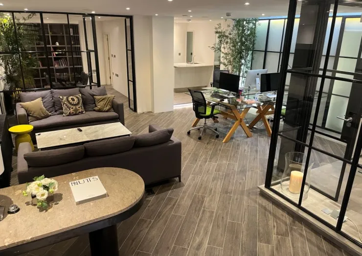 The property comprises a lower ground floor vacant office unit, with characterful modern space and lightwell providing good natural light. Lower Ground Floor: Main reception area, two meeting rooms, kitchen, two separate shower-rooms each with a toilet GIA 802 Sq Ft (74.5 Sq M).