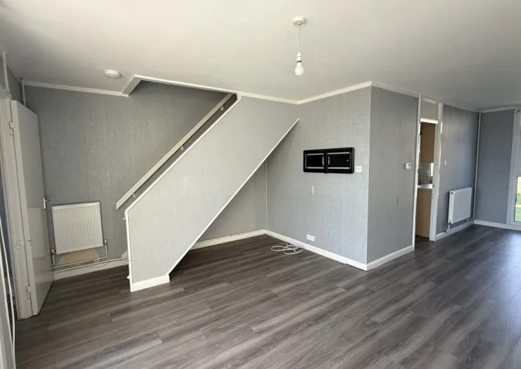 A mid-terrace, two bedroom house of non-traditional construction, and in need of improvement. The property has a gas heating system via radiators.