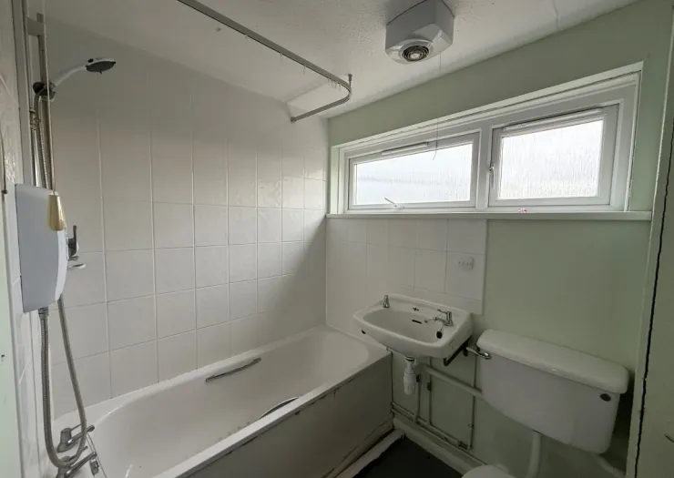 A three bedroom, mid-terrace house of non-standard timber frame construction. Entrance hall, sitting/dining room, kitchen/breakfast room, utility and cloakroom. Three bedrooms and bathroom. Rear garden. Communal parking area. No onward chain.
