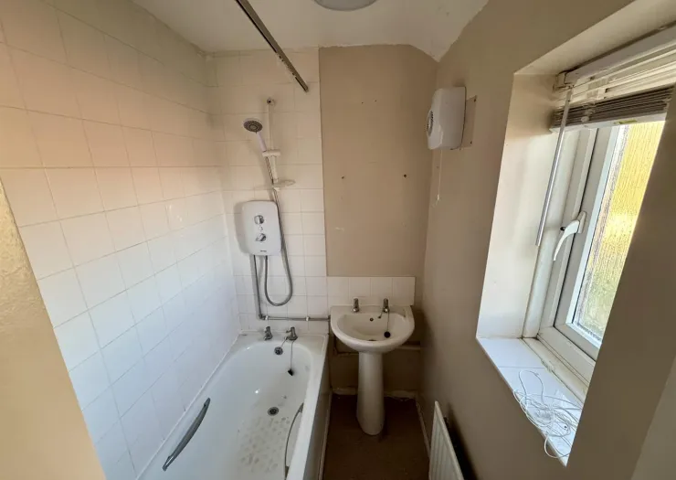 A two bedroom mid-terrace home. The property offers well-proportioned living accommodation, comprising a sitting room and kitchen on the ground floor, with two double bedrooms, a bathroom, and a separate wc upstairs. Outside, there is a driveway to the front and an enclosed rear garden. While the property would benefit from modernisation, it presents an excellent opportunity for improvement and would also make a good investment.