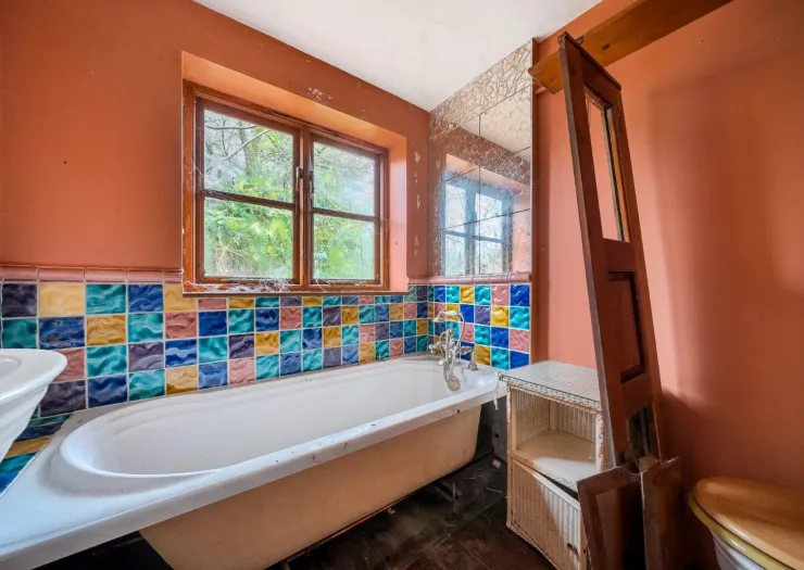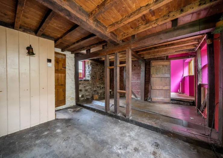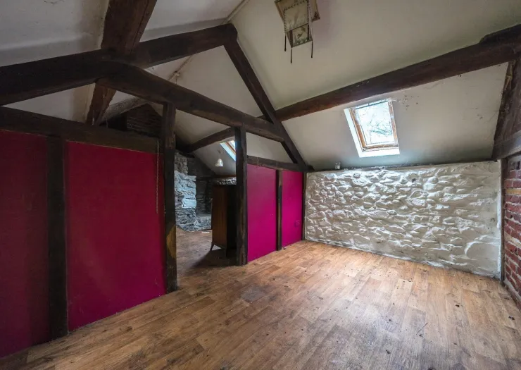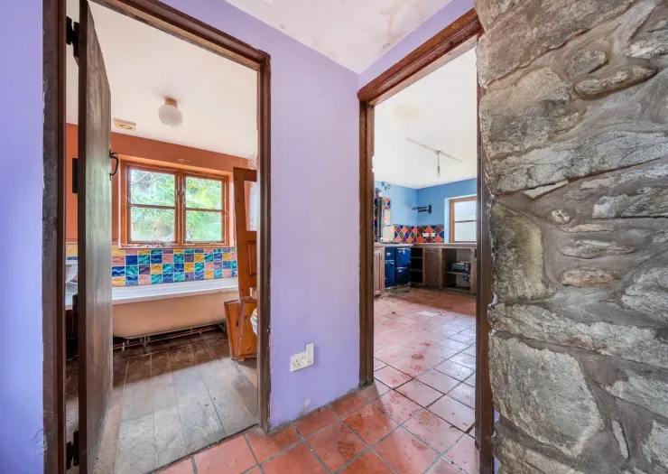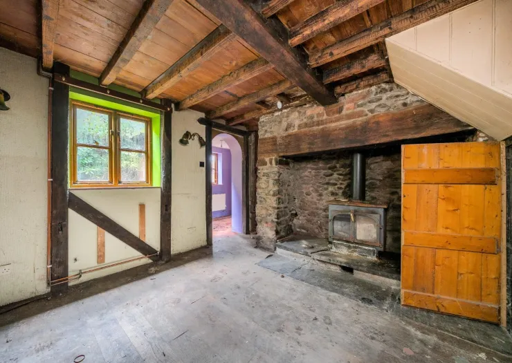 A detached stone cottage requiring renovation and refurbishment, plus two paddocks of around one acre in total. The property has been vacant for the last two years. The original cottage was extended around 2000 and comprises of an entrance hall, lounge with inglenook fireplace, stairs off and exposed stonework, kitchen, utility room, bathroom, galleried bedroom with exposed stone chimney breast, exposed timber framework and dressing room. The property has a garden area to the rear, a small paddock area to the front and stream boundary with a bridge over the stream to a chicken run. There is a block built store, static caravan onsite and covered wood storage area. On the opposite side of the road is a gate to further paddock area.