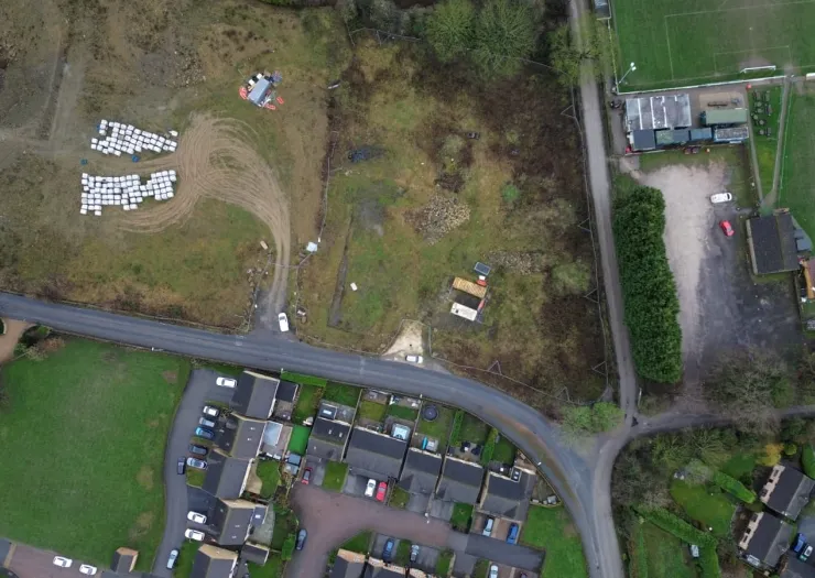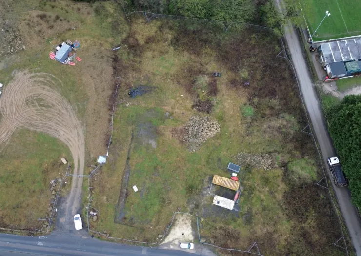 A roughly rectangular parcel of land extending to approx 1.4 acres (0.56 hectares) and sold with full planning permission for the construction of 10 detached dwellings. The plot primarily comprises scrubland, located in a mixed-use area.