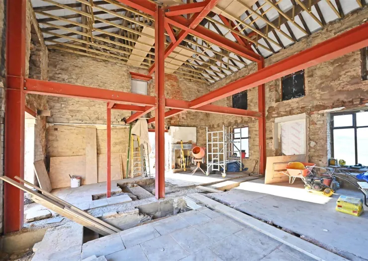 An opportunity to acquire a highly accessible property with granted planning permission and great development potential, offering a traditional farmhouse with spacious accommodation, and surrounding gardens and yard areas. The property extends to a total of 0.87 acres (0.34 hectares), excellent for those with small holding interest. The proposed plans will allow for multiple reception areas, a large breakfast kitchen, four bedrooms with ensuites and a bathroom. A detached outbuilding will provide a ground floor room, office space and shower room together with a four car garage.