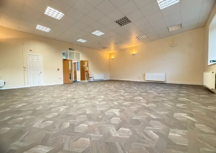 A large hall which has endless use and options. It comprises one reception room, two bathrooms and one very large hall. To be sold with vacant possession.