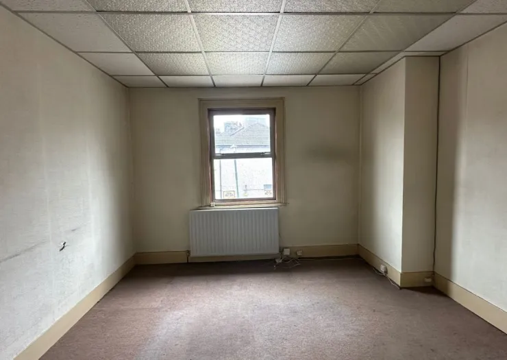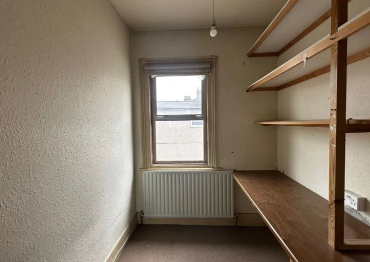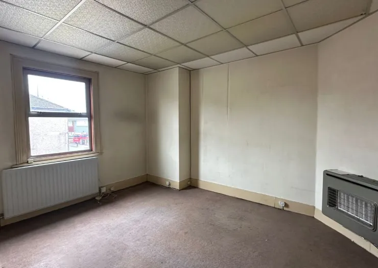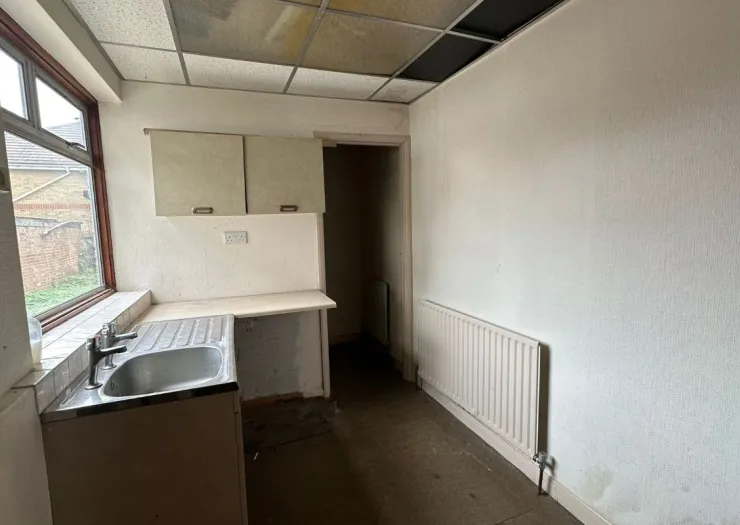 A vacant mid terrace building arranged to provide a ground floor commercial unit and a first floor three bedroom flat. Offered with planning permission to convert to either two studio flats or a three bedroom house. Situated on a mixed use road close to local shops and amenities.