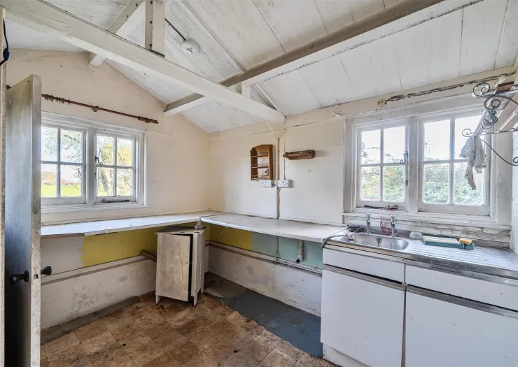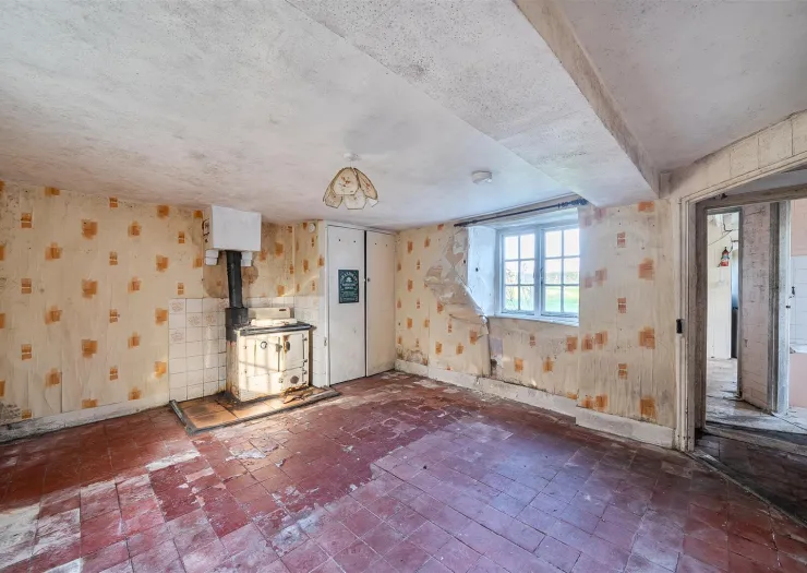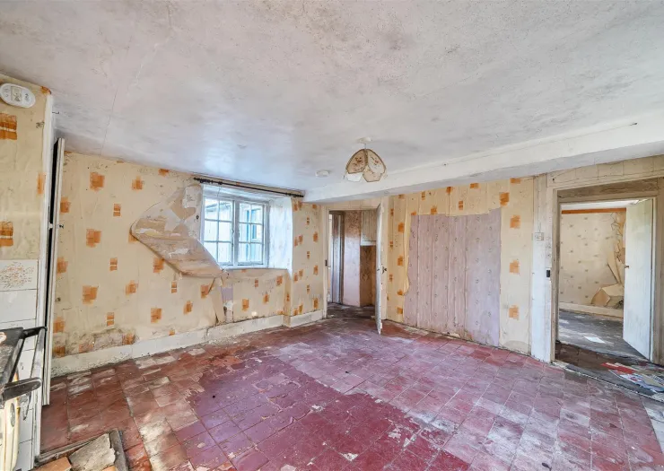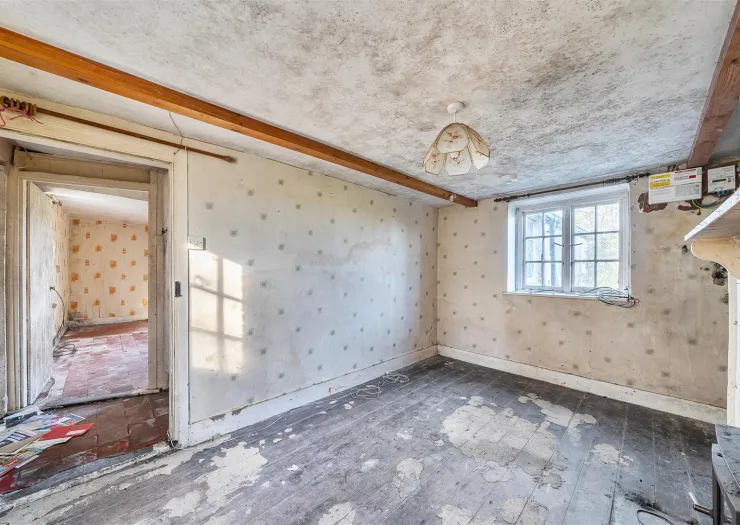 Located in an idyllic rural location, within grounds of about 0.80 acres, this detached period cottage requires comprehensive renovation, whilst providing excellent scope for extension, subject to planning permission. With a current GIA of 891 sq. ft., the property comprises two reception rooms, kitchen, bathroom, and entrance hall on the ground floor, and two bedrooms on the first floor. There is an attached stable/store, which could be incorporated into the living accommodation, subject to any required consent. The gardens and grounds extend to the east with an area of garden adjoining the cottage, and a small paddock beyond. There is a useful outbuilding/stable and and brick built former outhouse.