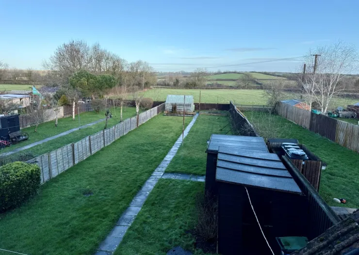 A three bedroom semi-detached house in a semi-rural location on a good size plot backing on to open countryside. The property is in need of updating. Potential to extend to the rear (subject to planning). To the front is a large gravelled driveway with parking for multiple vehicles. A gated side access leads to the long enclosed rear garden which is laid mainly to lawn with greenhouse.