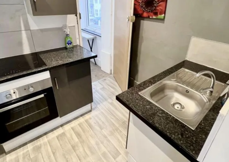 A first floor studio apartment, currently let at £950 p/c/m on a shorthold tenancy agreement and within easy access of local shops. Located within a property currently arranged as four self-contained flats, situated on a corner plot.